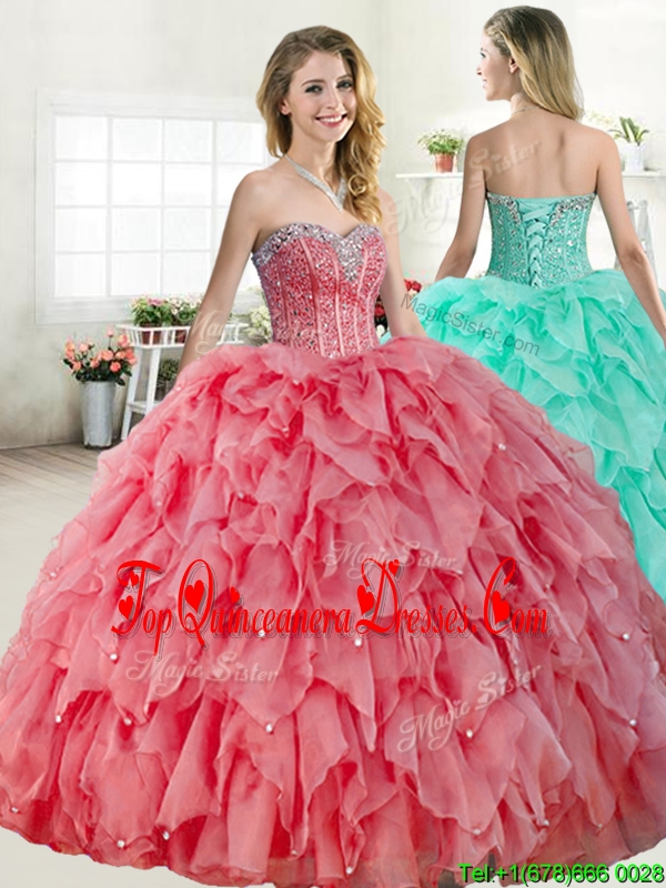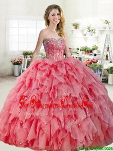Discount Coral Red Quinceanera Dress with Beading and Ruffles