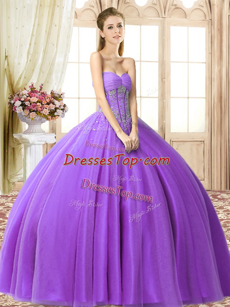 Discount Eggplant Purple Tulle Lace Up Sweet 16 Quinceanera Dress Sleeveless Floor Length Beading