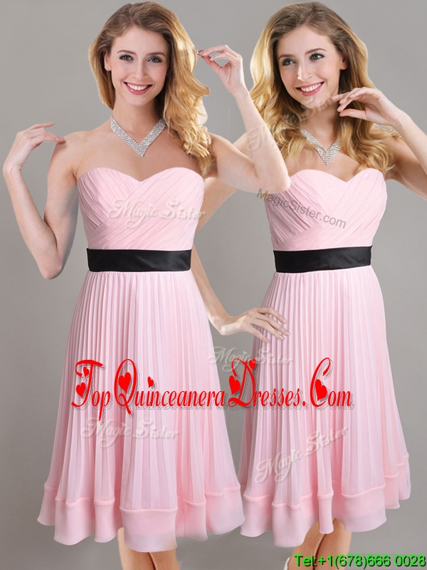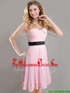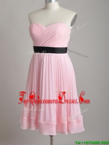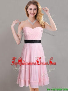 Discount Empire Pleated and Black Belted Dama Dress in Baby Pink