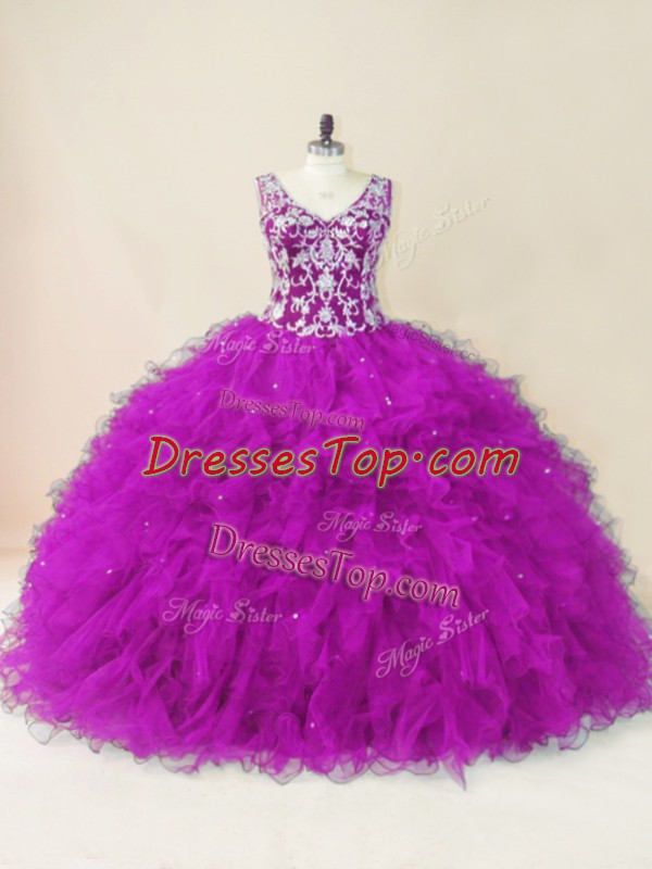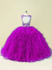Discount Floor Length Ball Gowns Sleeveless Fuchsia Vestidos de Quinceanera Backless