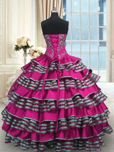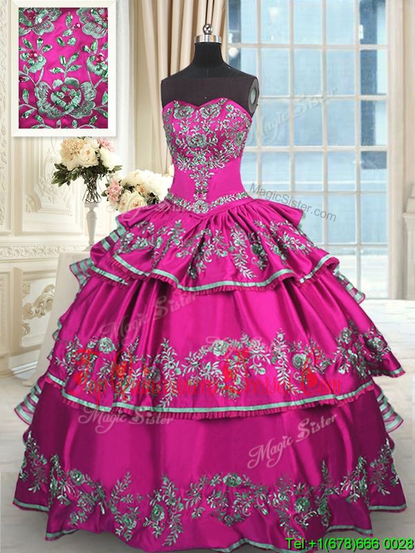 Discount Fuchsia Sweetheart Neckline Embroidery and Ruffled Layers Quinceanera Gowns Sleeveless Lace Up