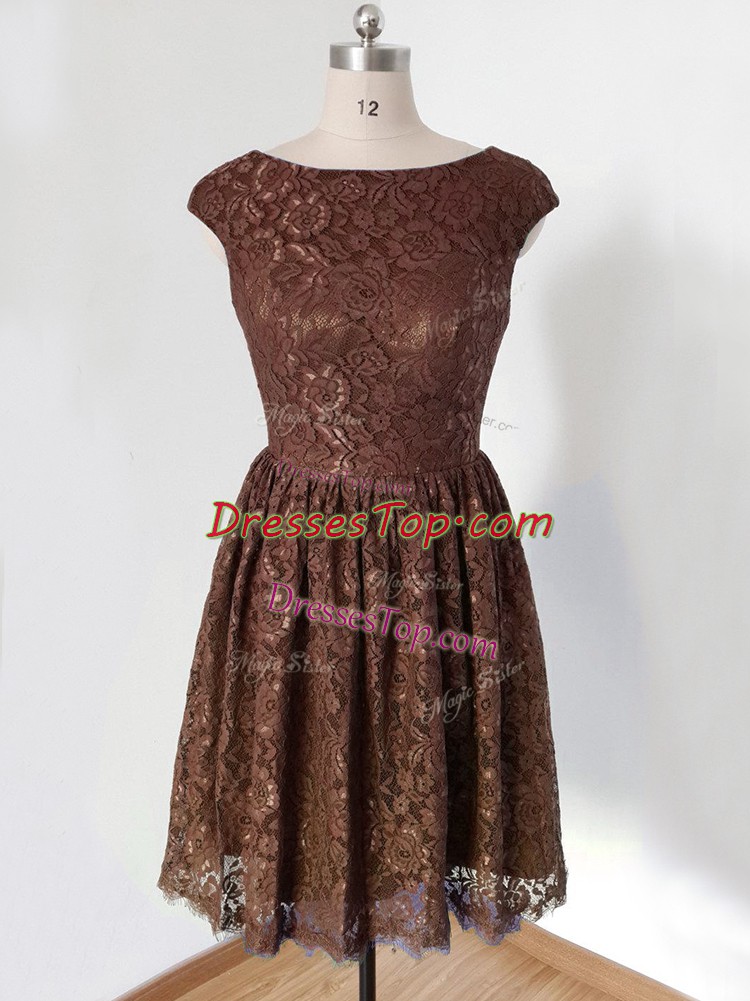 Discount Knee Length Brown Damas Dress Lace Cap Sleeves Lace