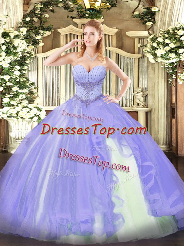 Discount Lavender Sweetheart Lace Up Beading and Ruffles Quinceanera Gowns Sleeveless