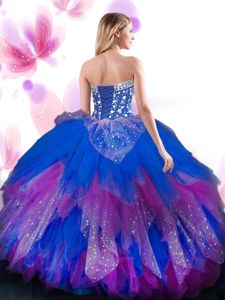 Discount Multi-color Ball Gowns Tulle Sweetheart Sleeveless Beading and Ruffles Floor Length Lace Up Ball Gown Prom Dress