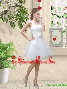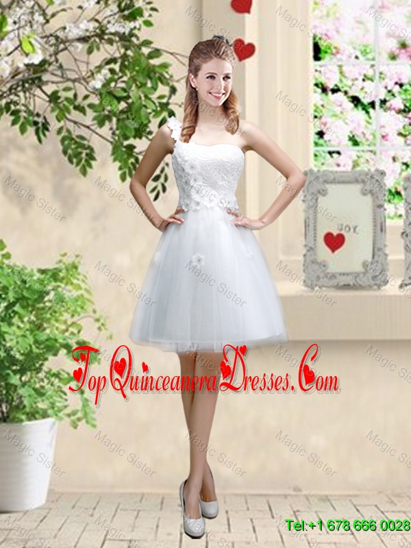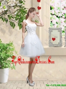 Discount One Shoulder Appliques Dama Dresses in White