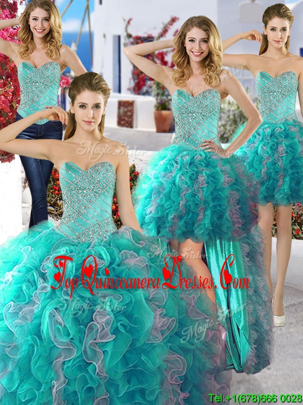 Discount Organza Detachable Quinceanera Dresses with Beading and Ruffles