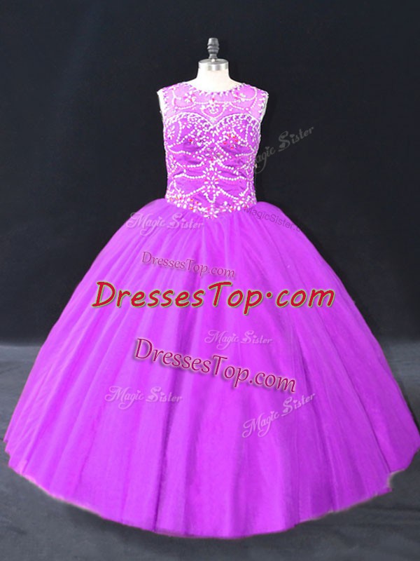 Discount Purple Lace Up Quinceanera Gowns Beading Sleeveless Floor Length