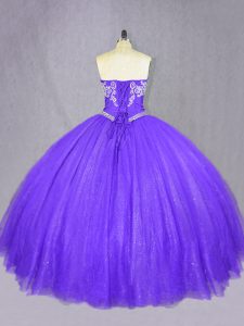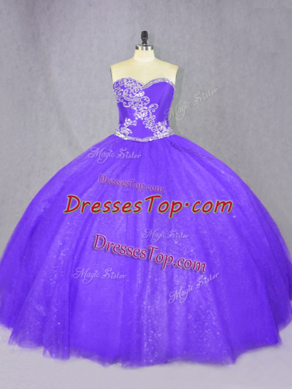 Discount Purple Sleeveless Floor Length Beading Lace Up Quince Ball Gowns