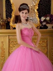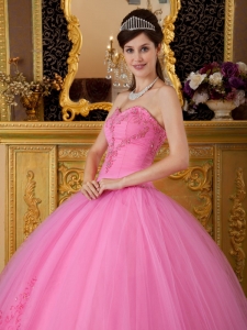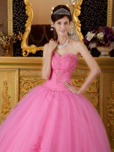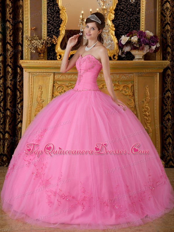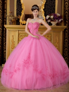 quinceanera dress colors, Discount Rose Pink Sweetheart Tulle Appliques Ball Gown
