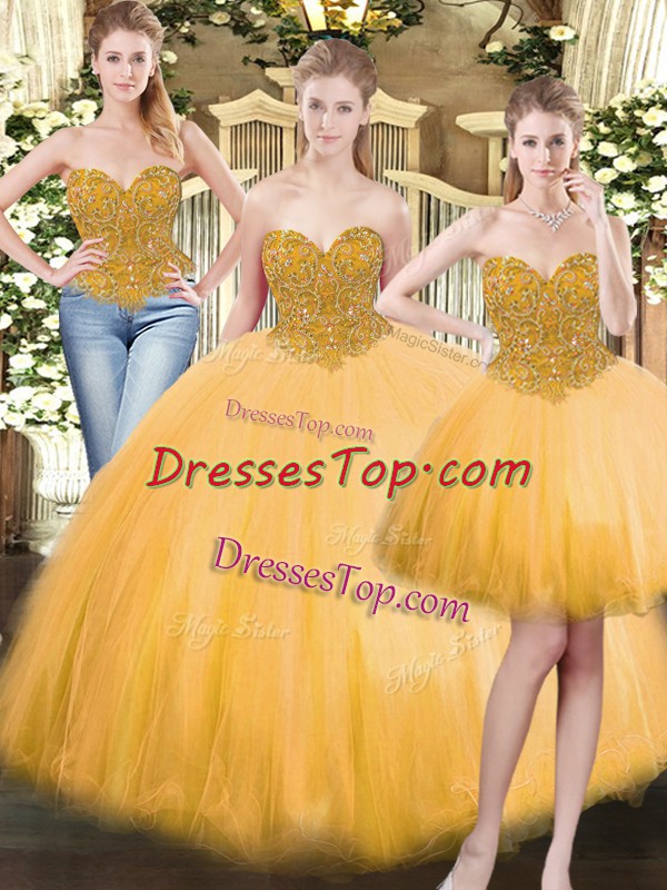 Discount Sleeveless Lace Up Floor Length Beading Sweet 16 Dresses
