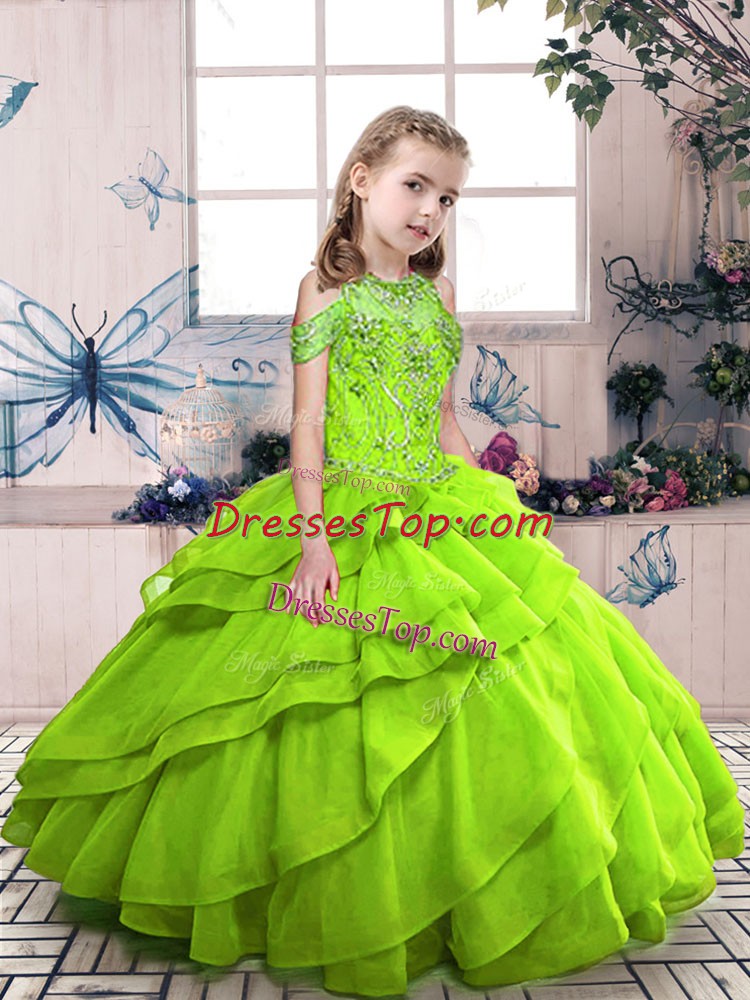 Discount Sleeveless Organza Floor Length Lace Up Pageant Dress for Womens in with Beading