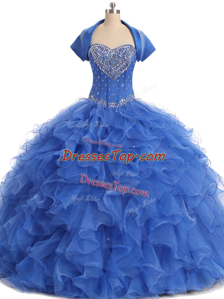 Discount Strapless Sleeveless Organza Ball Gown Prom Dress with Jacket Beading and Ruffles Lace Up