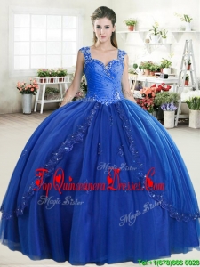 Discount Straps Royal Blue Quinceanera Dress with Beading and Appliques