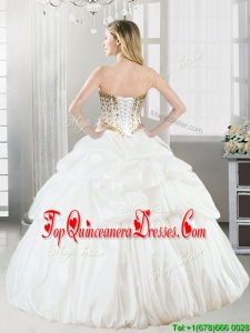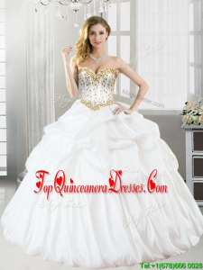 Discount Taffeta White Quinceanera Dress with Beading and Pick Ups