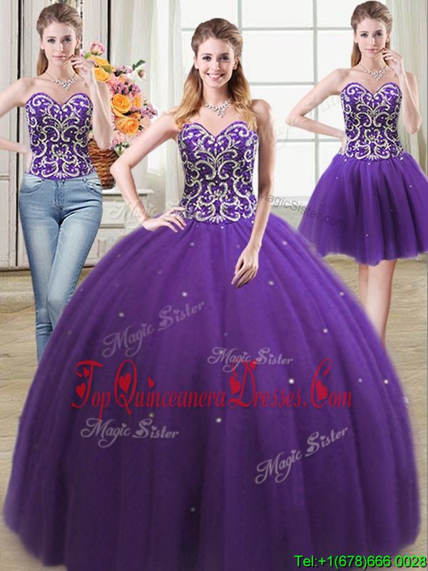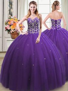 Discount Three Piece Floor Length Purple Quinceanera Dress Sweetheart Sleeveless Lace Up