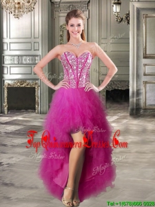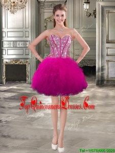 Discount Tulle Fuchsia Detachable Sweet 16 Dresses with Beading and Ruffles