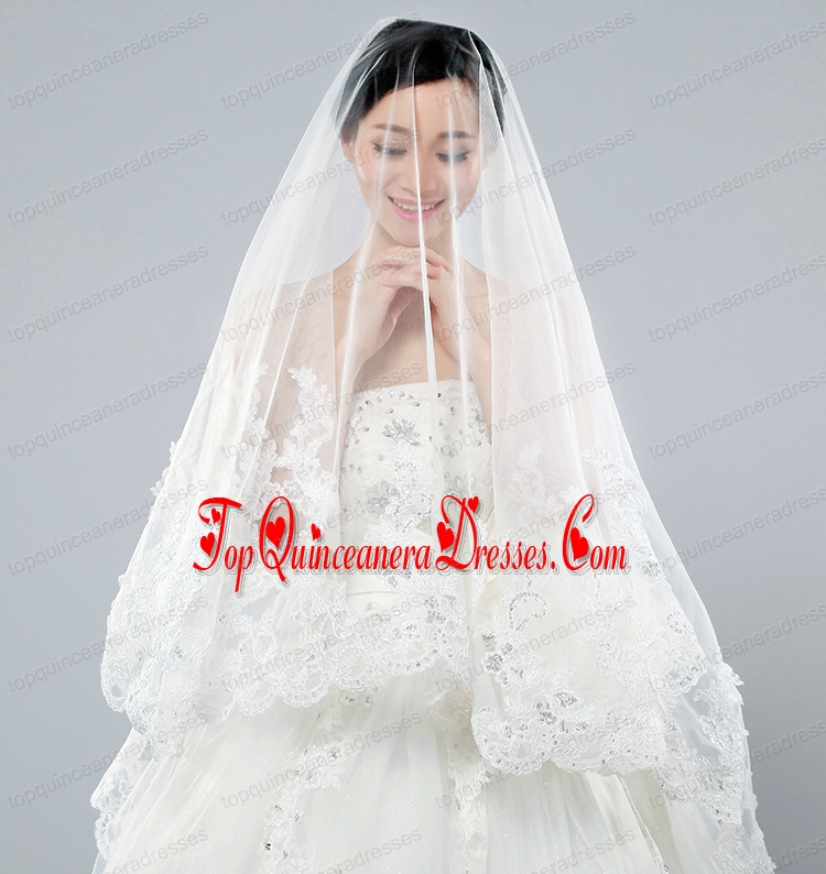 Discount Two-Tier Classic Wedding Veils with Lace Edge