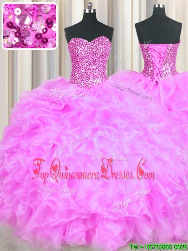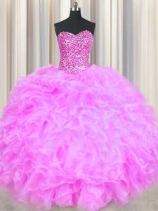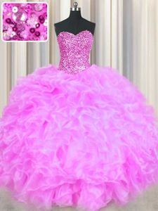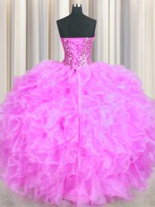 Dramatic Floor Length Lace Up Sweet 16 Quinceanera Dress Lilac and In for Military Ball and Sweet 16 and Quinceanera with Beading and Ruffles