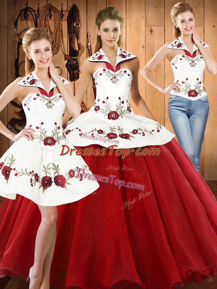 Dramatic Floor Length Three Pieces Sleeveless Wine Red 15 Quinceanera Dress Lace Up