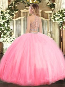 Dramatic Gold Two Pieces Tulle Scoop Sleeveless Beading Floor Length Zipper Quinceanera Gown