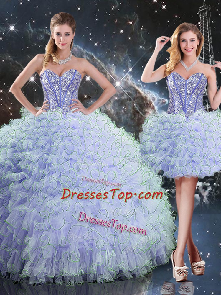 Dramatic Lavender Sleeveless Beading and Ruffles Floor Length Quinceanera Gowns
