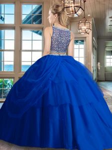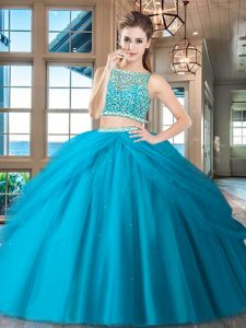 Dramatic Light Blue Bateau Side Zipper Beading and Ruffles 15th Birthday Dress Sleeveless