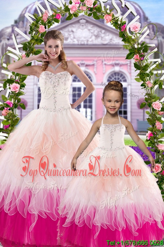 Dramatic Multi-color Sleeveless Floor Length Beading Lace Up Quinceanera Gowns