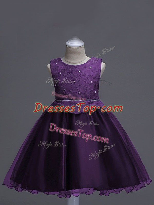 Dramatic Organza Sleeveless Knee Length Pageant Gowns and Lace
