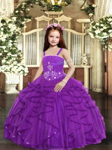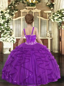 Dramatic Purple Ball Gowns Straps Sleeveless Tulle Floor Length Lace Up Ruffles Little Girl Pageant Dress