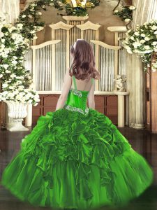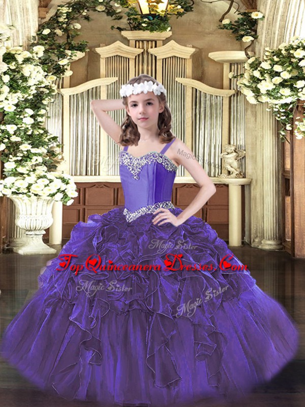 Dramatic Purple Straps Lace Up Beading and Ruffles Kids Formal Wear Sleeveless