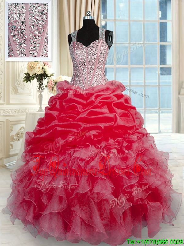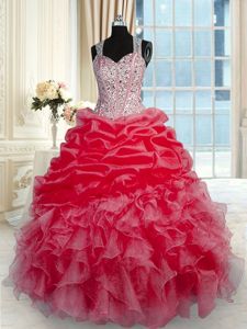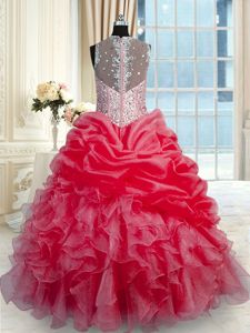 Dramatic Red Sleeveless Organza Zipper 15th Birthday Dress for Military Ball and Sweet 16 and Quinceanera