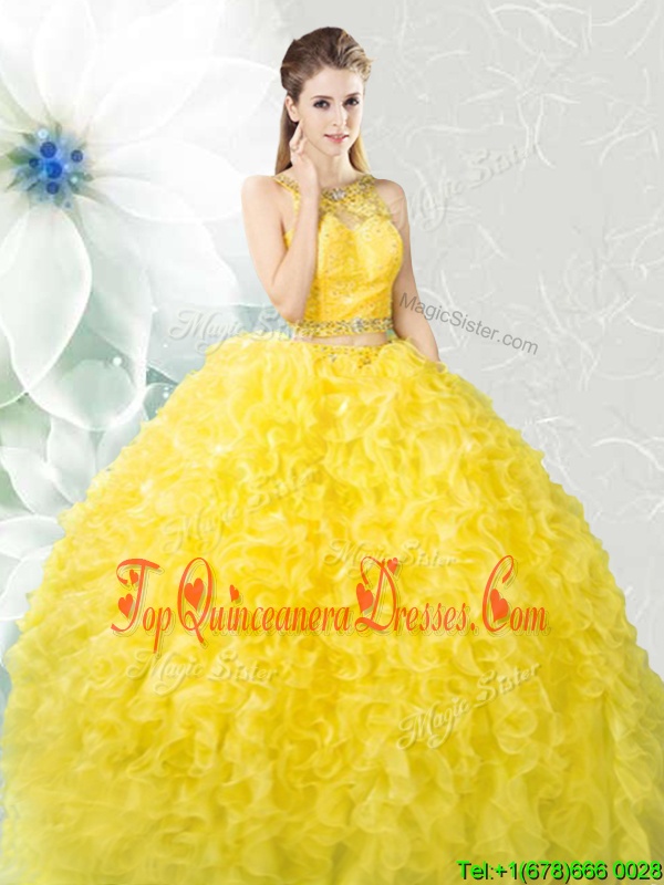 Dramatic Scoop Sleeveless Zipper Floor Length Beading and Ruffles Quince Ball Gowns