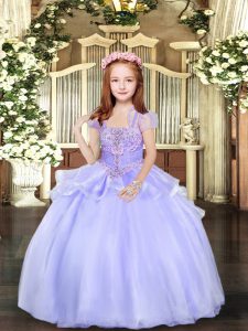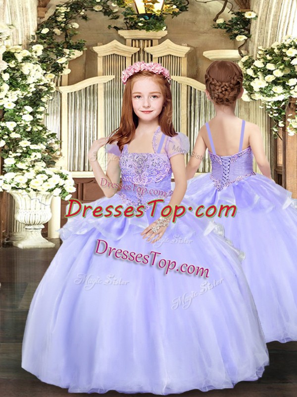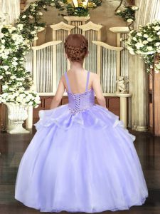 Dramatic Straps Sleeveless Lace Up Girls Pageant Dresses Lavender Organza