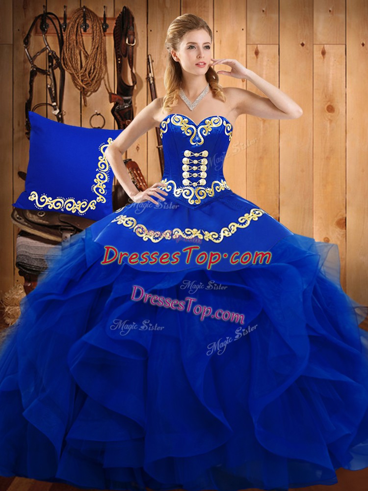 Dramatic Sweetheart Sleeveless Organza Quinceanera Gowns Embroidery and Ruffles Lace Up