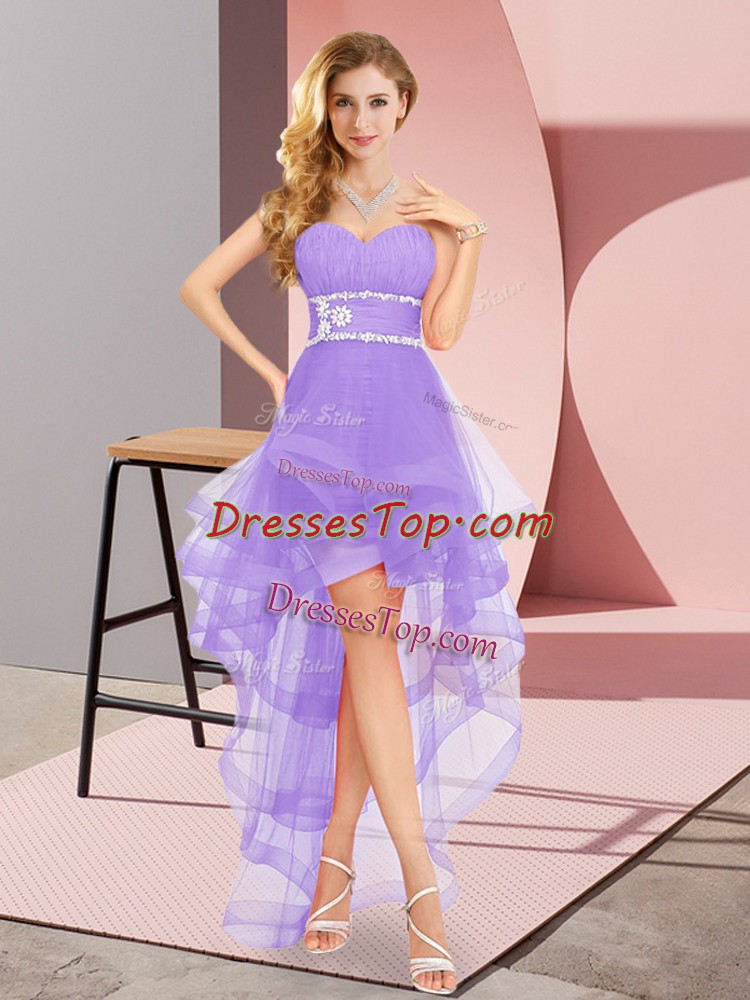 Dramatic Tulle Sleeveless High Low Vestidos de Damas and Beading