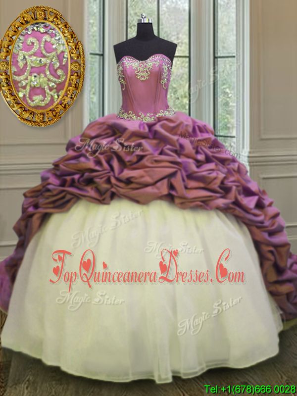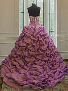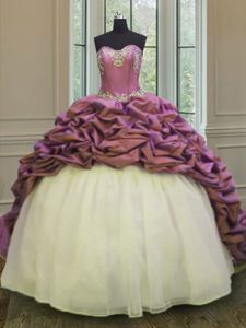 Dramatic White And Purple Ball Gowns Beading and Appliques and Pick Ups Sweet 16 Dress Lace Up Organza and Taffeta Sleeveless