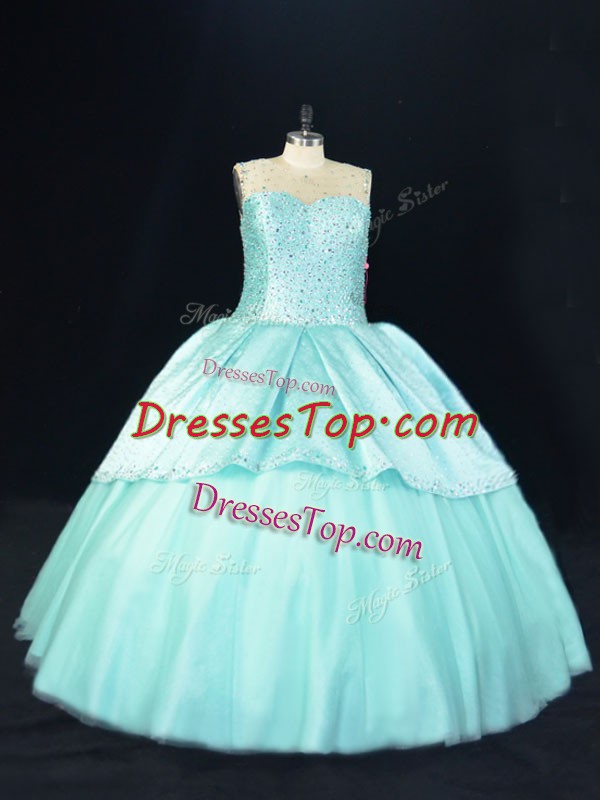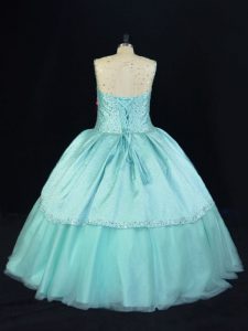 Dynamic Beading 15 Quinceanera Dress Aqua Blue Lace Up Sleeveless Floor Length