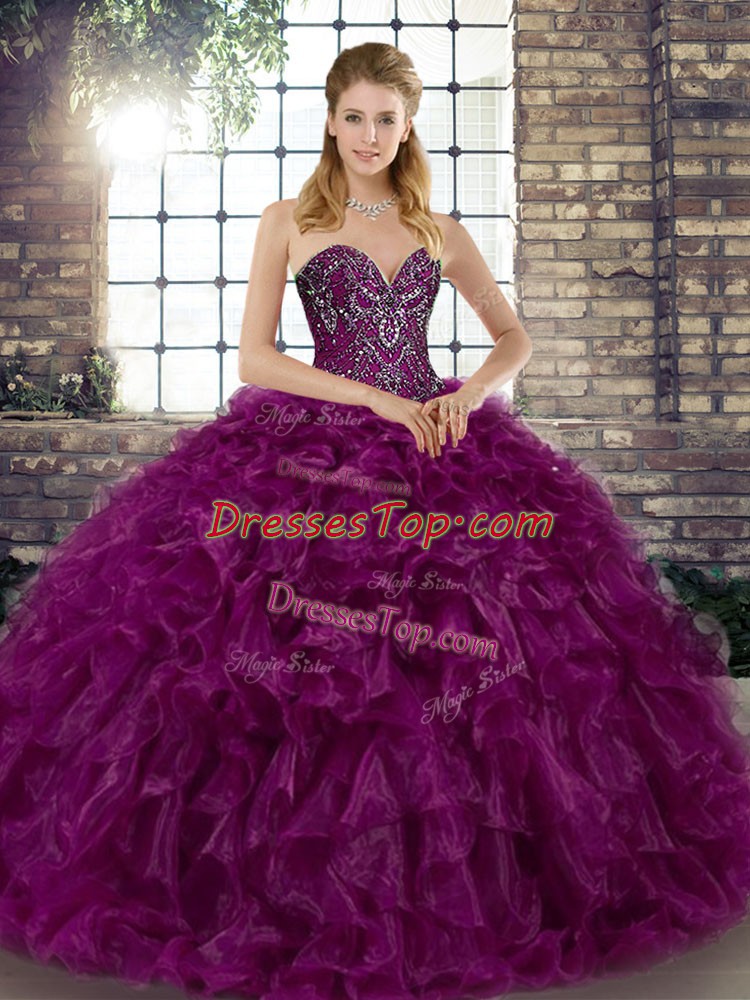 Dynamic Floor Length Ball Gowns Sleeveless Purple Ball Gown Prom Dress Lace Up