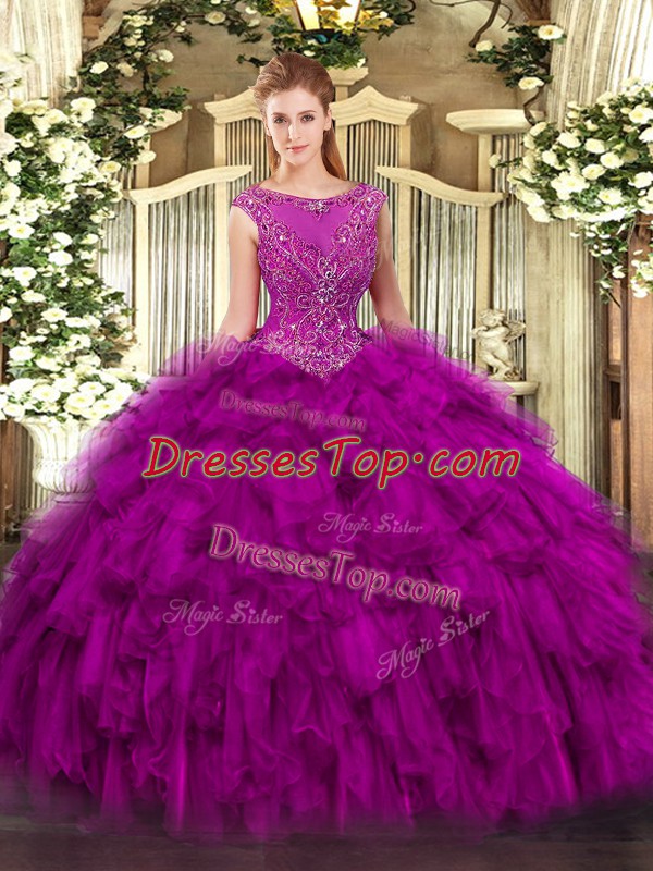 Dynamic Fuchsia Zipper Scoop Beading and Ruffles Quince Ball Gowns Organza Sleeveless