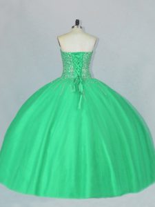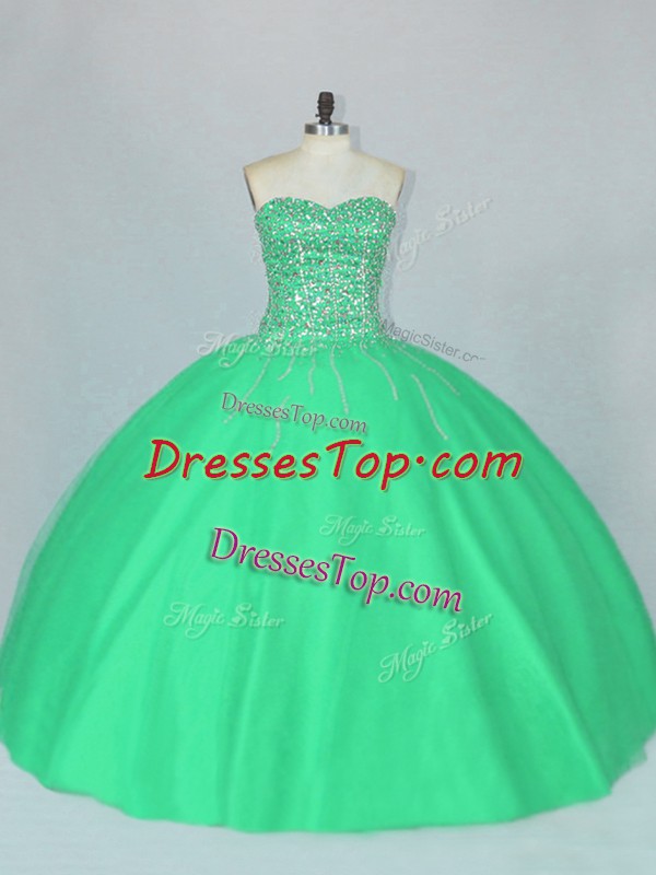 Dynamic Green Tulle Lace Up Quinceanera Dress Sleeveless Floor Length Beading