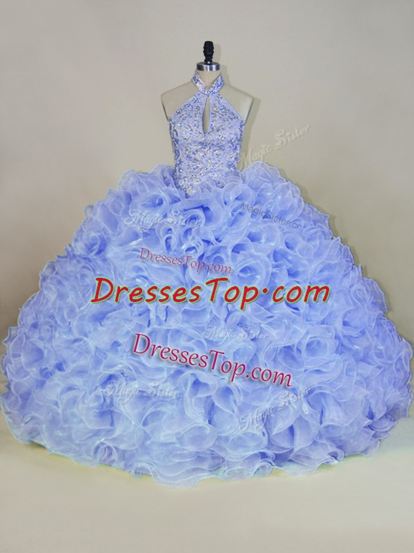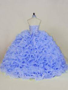 Dynamic Lavender Ball Gowns Beading 15th Birthday Dress Lace Up Fabric With Rolling Flowers Sleeveless
