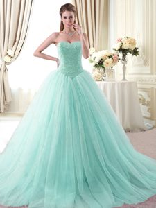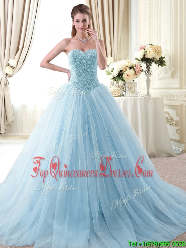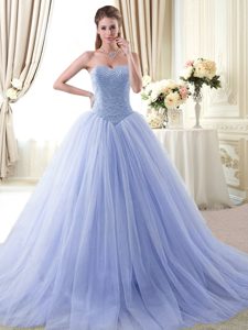 Dynamic Light Blue Dama Dress Military Ball and Sweet 16 and Quinceanera and For with Beading Sweetheart Sleeveless Lace Up