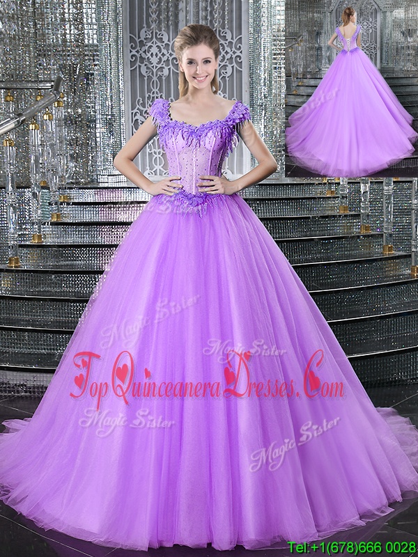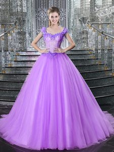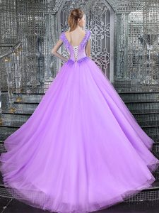 Dynamic Lilac Straps Neckline Beading and Appliques Sweet 16 Dresses Sleeveless Lace Up