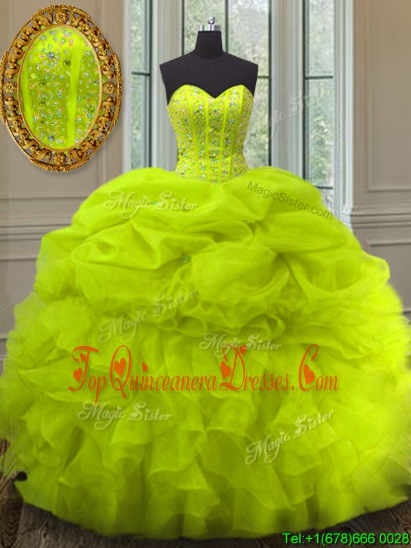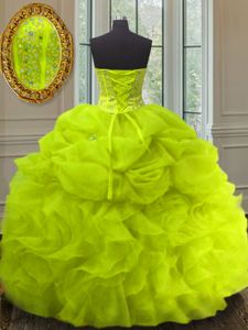 Dynamic Pink Organza Lace Up Vestidos de Quinceanera Sleeveless Floor Length Beading and Ruffles
