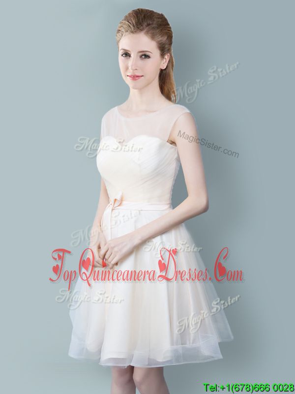 Dynamic Scoop Sleeveless Zipper Vestidos de Damas Champagne Tulle