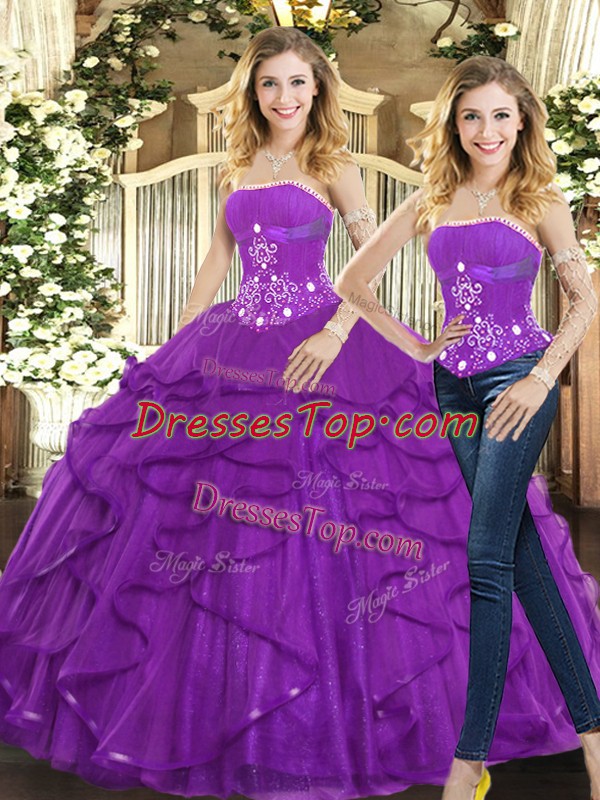 Dynamic Sleeveless Beading and Ruffles Lace Up Vestidos de Quinceanera