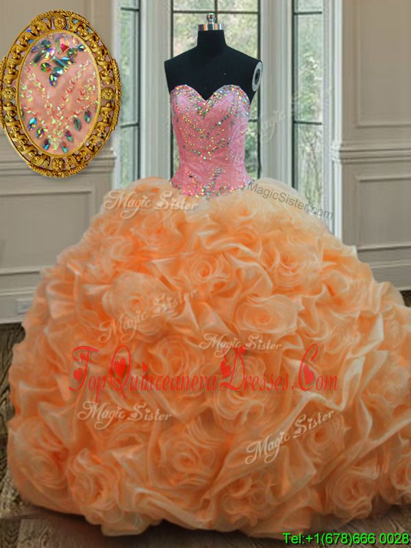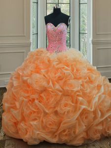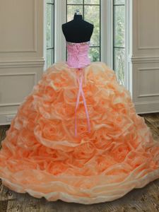 Dynamic Sleeveless Floor Length Beading Lace Up Quinceanera Gowns with Orange