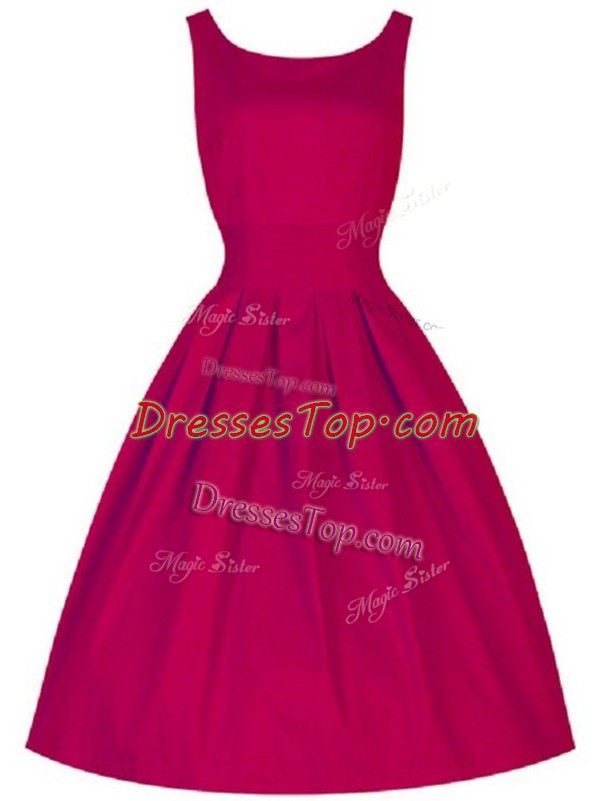 Dynamic Sleeveless Knee Length Ruching Lace Up Quinceanera Court Dresses with Fuchsia