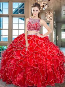 Dynamic Sleeveless Side Zipper Floor Length Beading and Ruffles Sweet 16 Quinceanera Dress
