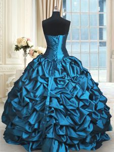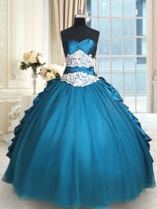 Dynamic Teal Sweetheart Neckline Beading and Lace and Appliques and Ruching Quinceanera Gown Sleeveless Lace Up